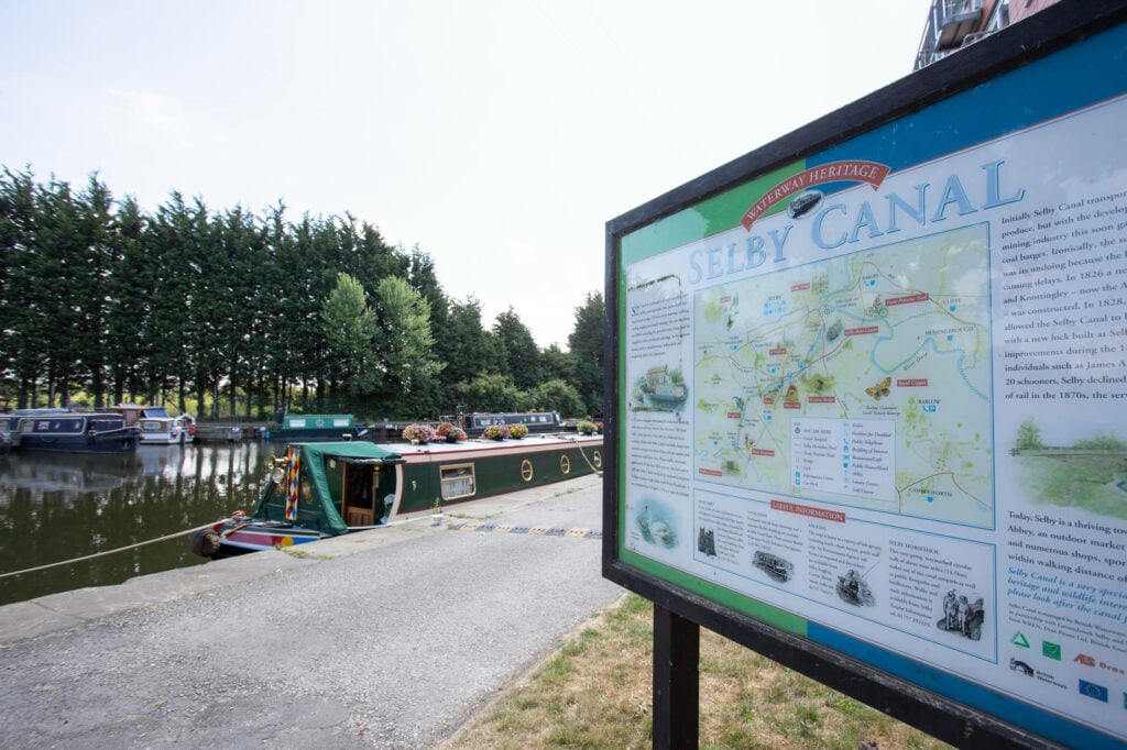 Stop 1. Lock Basin. The 6-mile long Selby Canal finishes here, with the Lock Basin joining the canal to the River Ouse. When the canal was still in commercial use, barges would wait here before passing into the river. You may notice a channel running parallel to the river- this was created in the 1800s and is called the ‘Lazy Cut’. To save time cargo was moved from a barge to a ship via a crane, instead of using the lock.