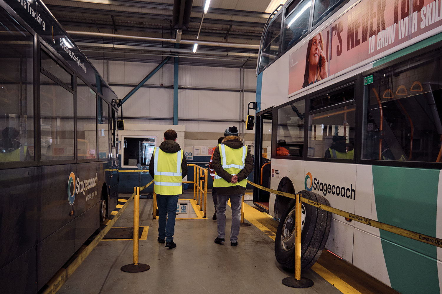 The tour gave Igor a proper look at all the different parts of the depot and the modern technology needed to keep today’s bus network moving. A visit like this might include: