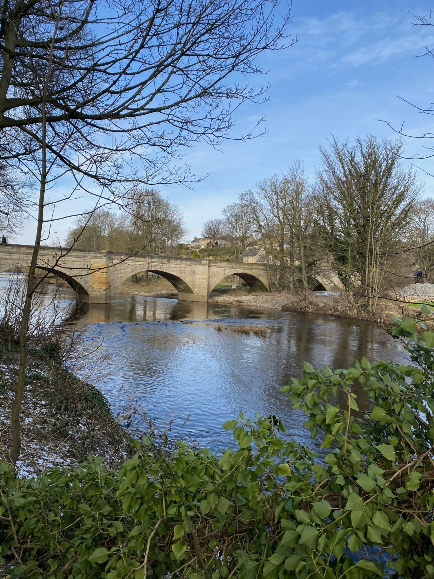 As you travel down the hill (chasing the ball in Merlin's case!), you can either continue straight ahead towards Newton Kyme or make a sharp left towards our river walk. The river is down a sloped bank and as you walk along, you'll spot the bridge below in the distance, with its beautiful arches.