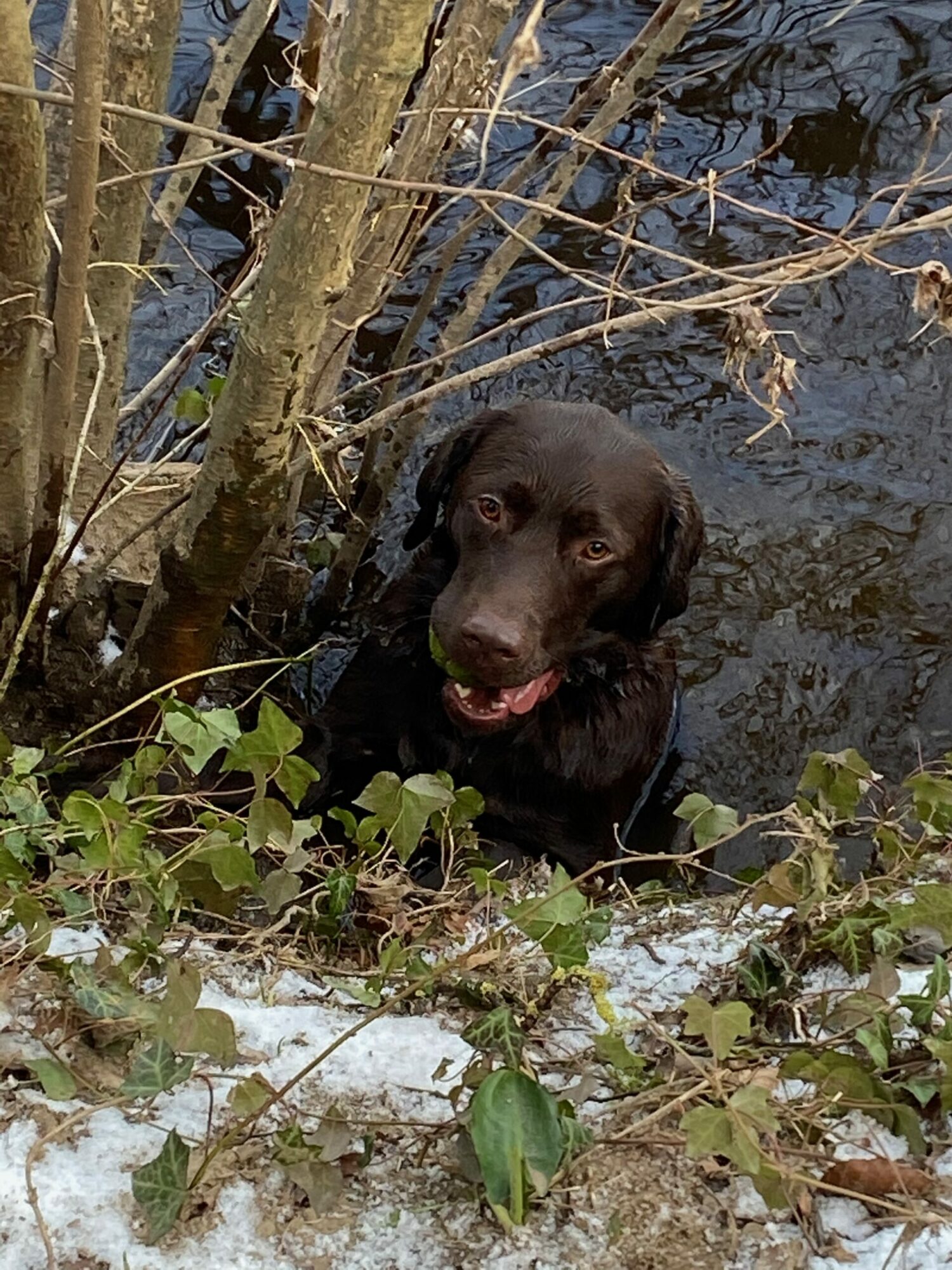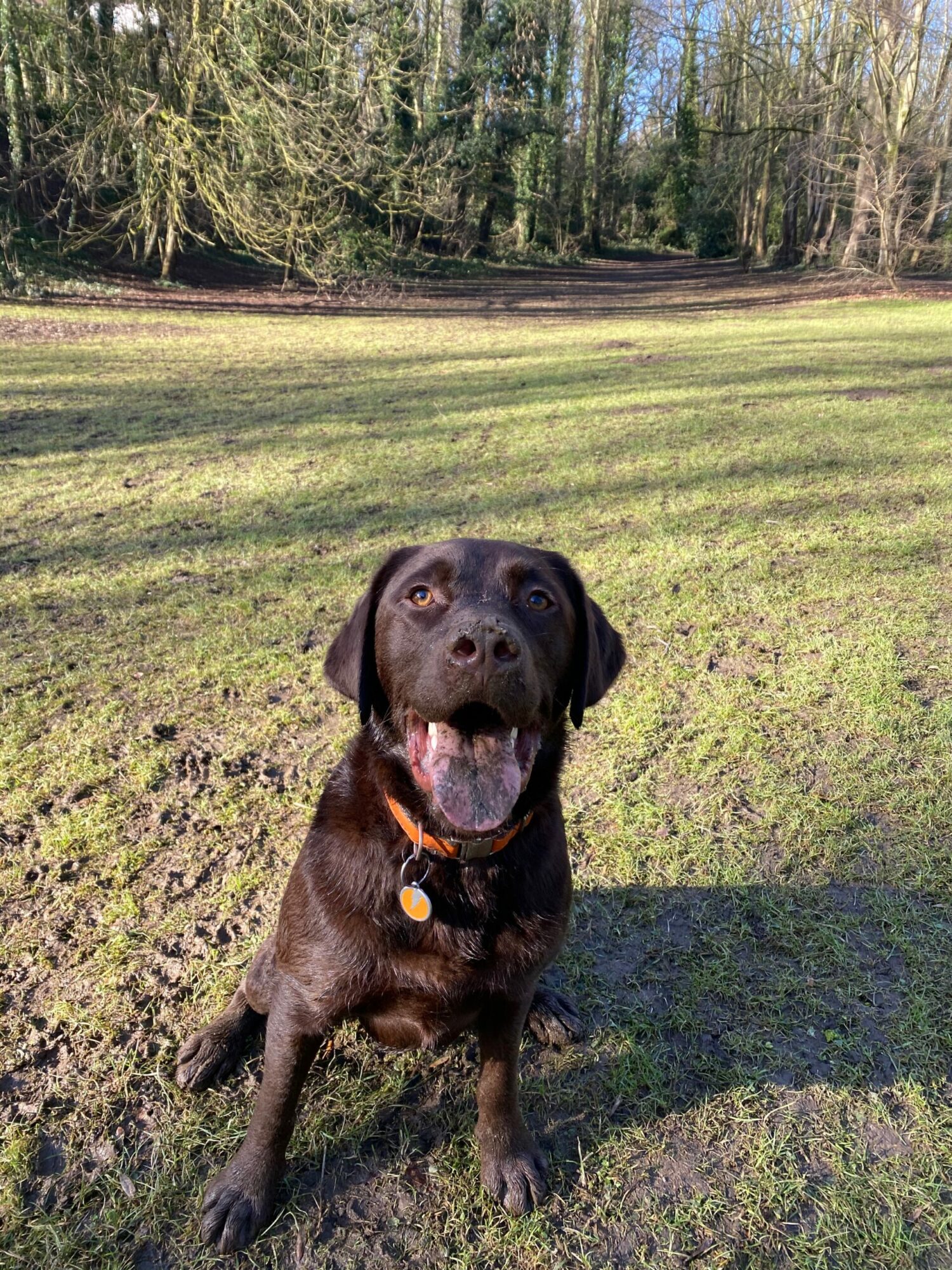 As you pass under the bridge (which has great echoes by the way!), you'll arrive at Merlin's daily ball chasing patch. He enjoys running the length of it and skidding through the mud to grab his ball!