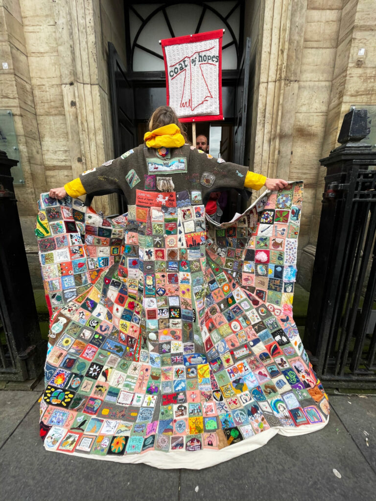 “The Coat's work through this ongoing pilgrimage is to offer everyone the invitation to stop and, in wearing it, to focus on the climate and ecological emergency, and our connection to all those others who face it with us. The Coat of Hopes also carries forward, in its fabric, the stories of people and places encountered on its way. It will be so good to meet, walk, sing, and sew with the people of West Yorkshire, and take them with us as we continue on our way - walking towards the end of this emergency,”