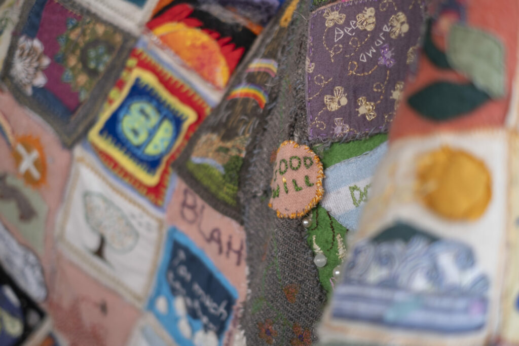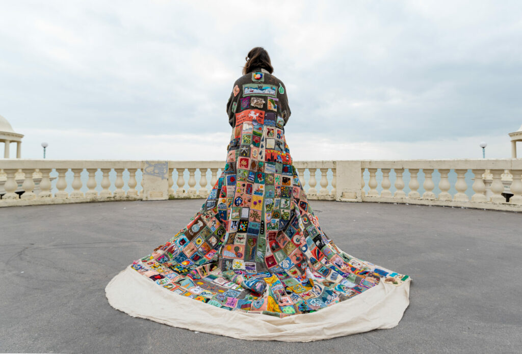 Starting its journey as a blank canvas, patches were added during its pilgrimage from the south coast of England to COP 26 in Glasgow in 2021, a nine-week journey aimed at urging global leaders to commit to a sustainable future.