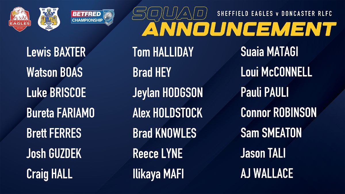 Doncaster RLFC Squad Announcement for Sheffield Eagles Clash