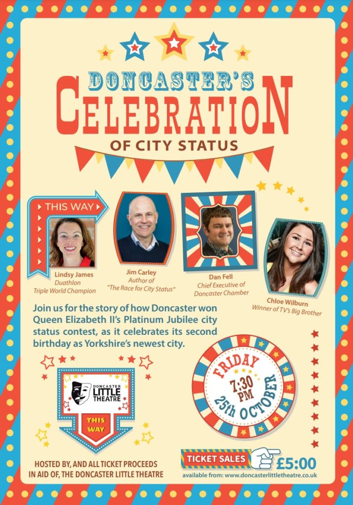 If you’d like to join in the celebration and be part of this special evening, tickets are available now. You can purchase them online through the Doncaster Little Theatre’s website at https://doncasterlittletheatre.co.uk/events/city-status/.