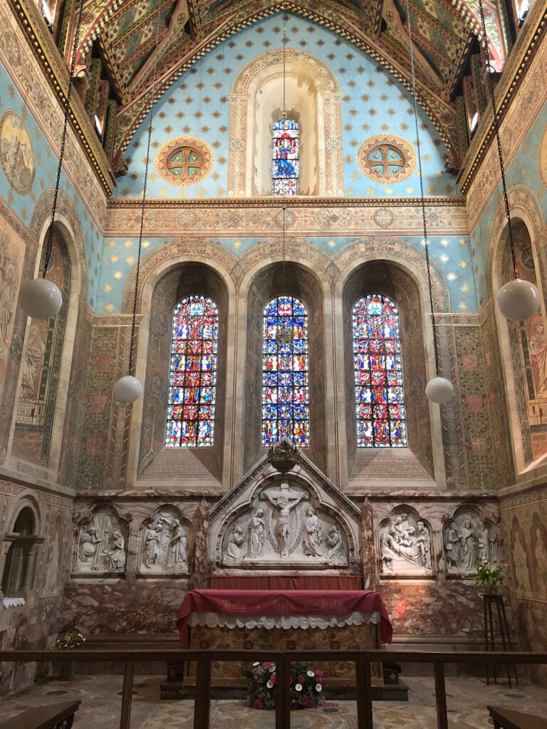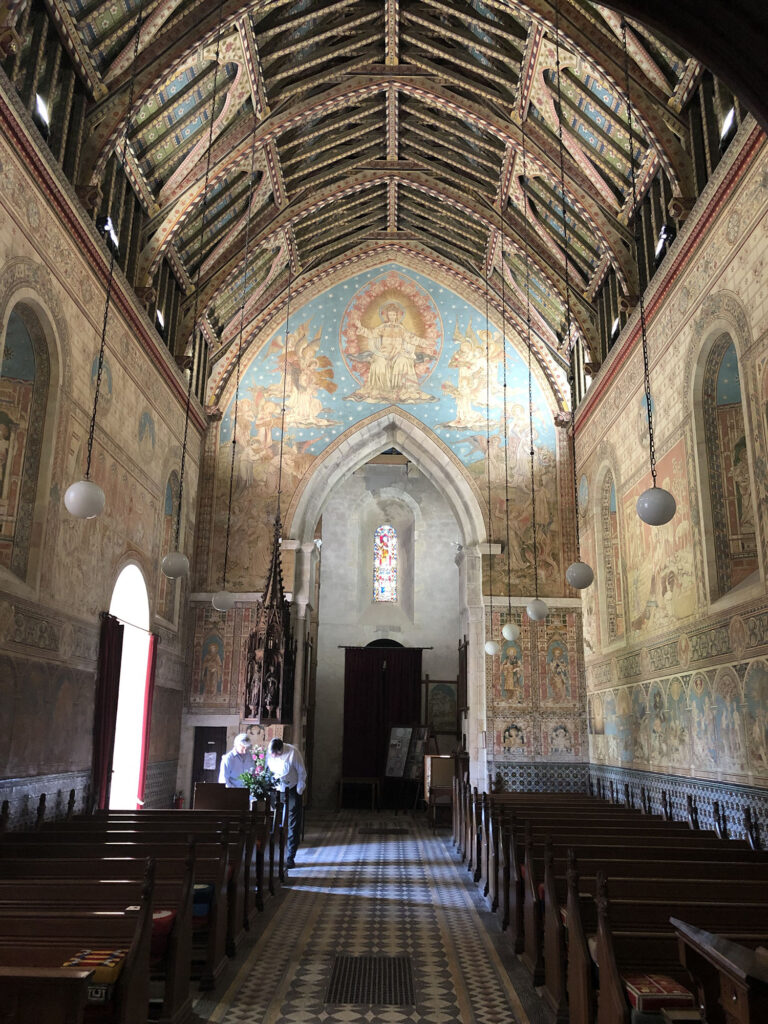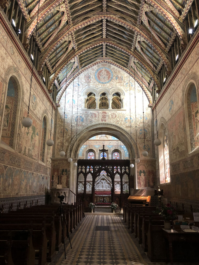 Exposing the visitor to a unique sensory overload quite unlike any other parish church, the walls are covered with exquisite Pre-Raphaelite style paintings provoking an awe-inspiring experience from the glowing hues of reds, yellows, and orange decoration filling every inch from floor to ceiling.