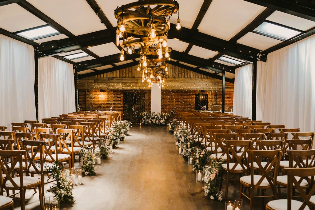 Flowers and Styling: Gathered at Dusk (florist), Perfect Venue Styling Yorkshire, and Chair and Table Hire York can make any venue look magical.