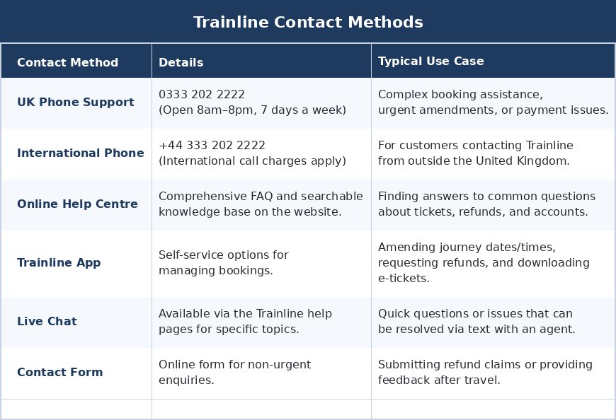 Trainline operates as an independent digital rail and coach technology platform, aggregating routes and fares from hundreds of operators. Its customer service infrastructure is therefore designed as a multi-channel system to handle a high volume of queries related to bookings made through its app and website. This structure is built to guide users towards the most efficient resolution path, whether that is through automated self-service or direct contact with a support agent. The key is to select the appropriate channel based on the urgency and complexity of your issue. For direct intervention, the Trainline contact number remains the primary method for real-time support.