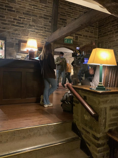 In spring 2022, the crew arrived at Holdsworth House to film a scene for series 3, episode 5, where Richard Cawood goes to meet Darius Knezevic. The location team moved furniture and pictures around, and whilst an actor played the part of the hotel receptionist, our own reception team were hiding behind the reception's closed door, ready to answer phones in between takes.