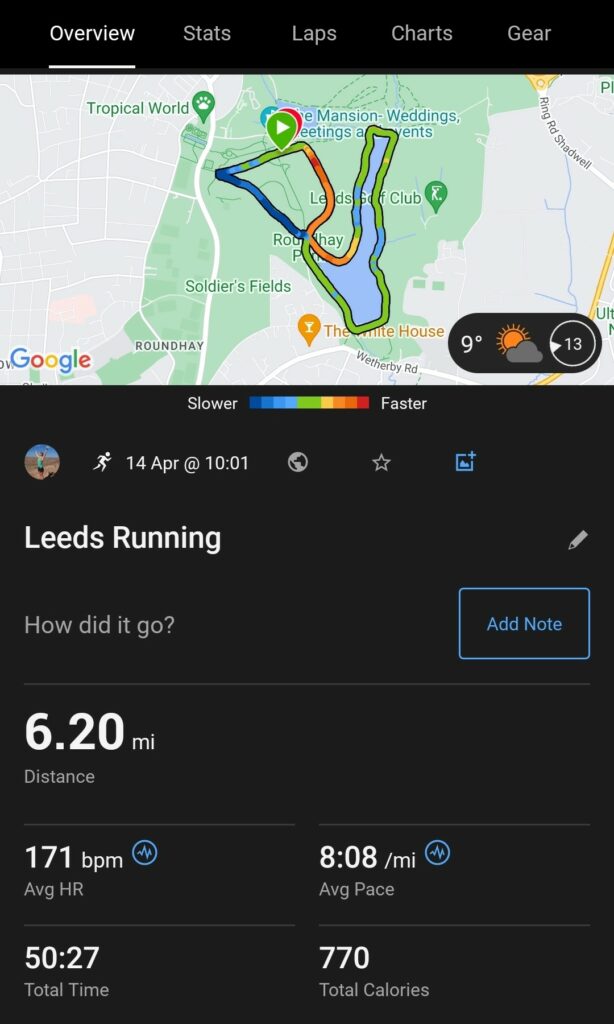 So, after a few weeks of feeling the strain, I now feel like I’m coming out of the low and am more motivated and eager to keep going with the training. The lighter evenings are a big help and even though the weather has been bad, a bit of sunshine can go a long way to giving that extra bit of energy. Ava is going through something now and is waking up in the night which is disrupting my sleep so I’m making sure I’m going to bed early enough and prioritising rest and nutrition. The downside of having a training watch is that it tells you your training status. Mine is ‘Strained’ at the moment meaning my training load is ok but my fitness is decreasing, apparently because of the lack of sleep. Don’t think the watch takes into account being a parent. I don’t feel like my fitness is decreasing and I think in this situation I just need to go by feel, metrics can only tell you so much.