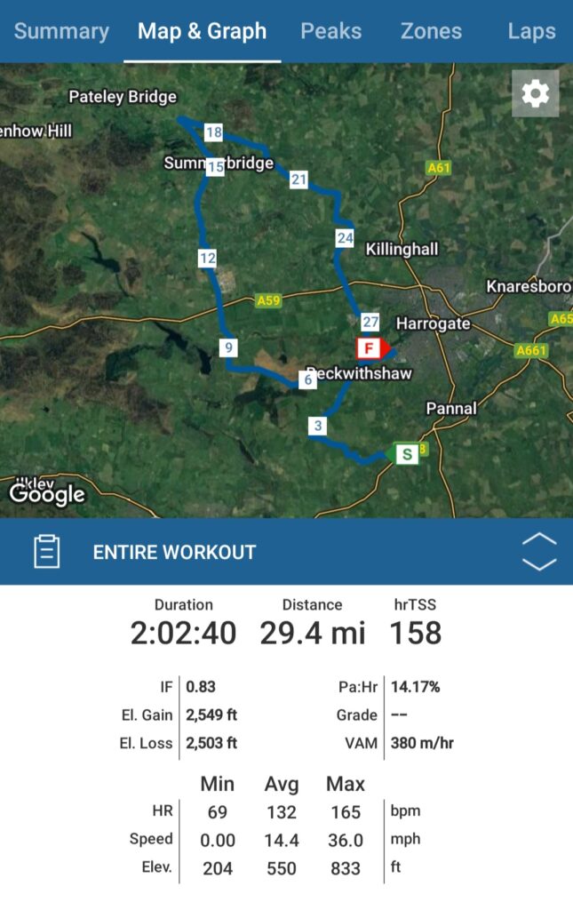I get to do an outdoor ride once a week at the moment, but I hope this will increase once it gets lighter in the evenings. I choose my routes based on the wind/weather and if I can meet my husband and kids somewhere. Ride one was a Zone 2, 2hr bike with 780m elevation, light winds, and a pleasant day. I rode towards Pateley Bridge then cut back towards Smelthouses, Burnt Yates and finished at RHS Harlow Carr just outside of Harrogate, which is great place for kids. The second was a 2hr 50min Z2 ride, 870m elevation. Bit of a windy day and I thought I was going to be slower than I was, but I finished the ride 10mins early. I rode up to Fountains Abbey and though Studly Royal which is a deer park and if you’re lucky enough you can see the deer from the road.