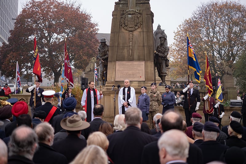 - Details: Procession of dignitaries and military personnel to the war memorial, followed by a multi-faith service led by the Bishop of Kirkstall. Includes a two-minute silence at 11:00am.