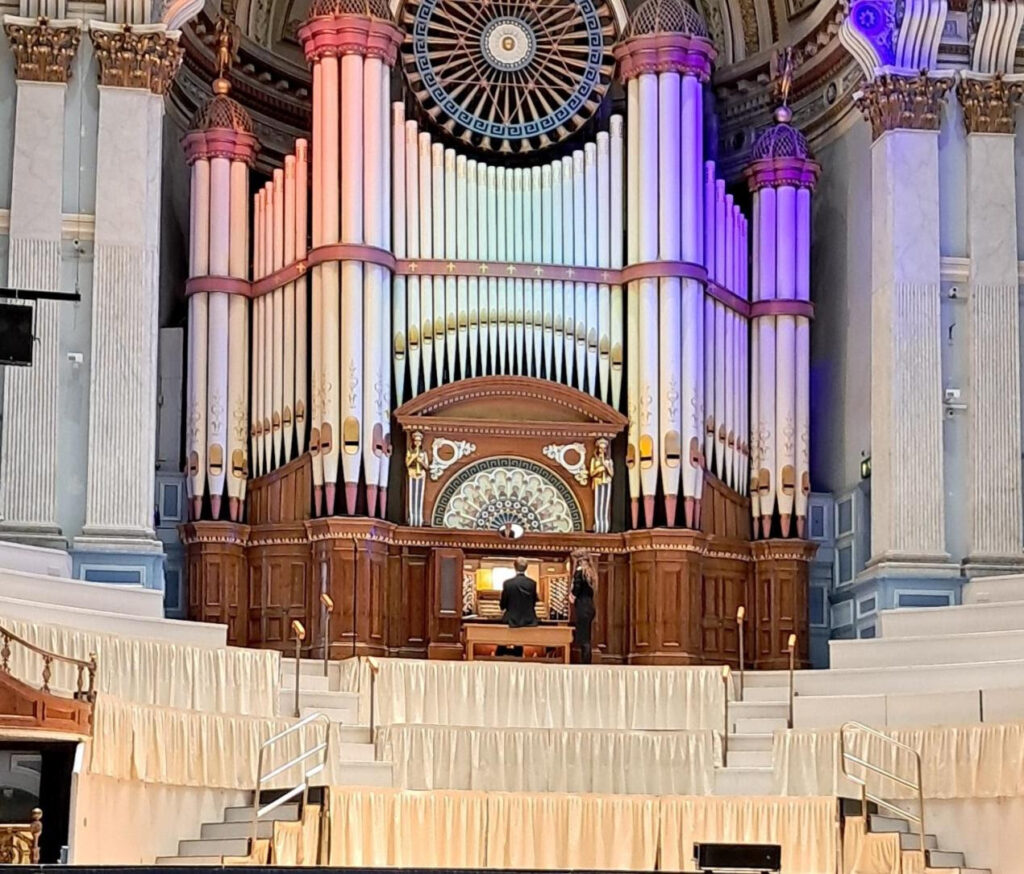 George, who lives at HC-One’s Greenacres Care Home in Meltham, Holmfirth, had no idea that his big day on 14 February (yep, Valentine’s Day!) would include a visit to one of the most iconic music venues in the area. The 1100-seater Huddersfield Town Hall is famous for hosting concerts, events, and—you guessed it—organ recitals.