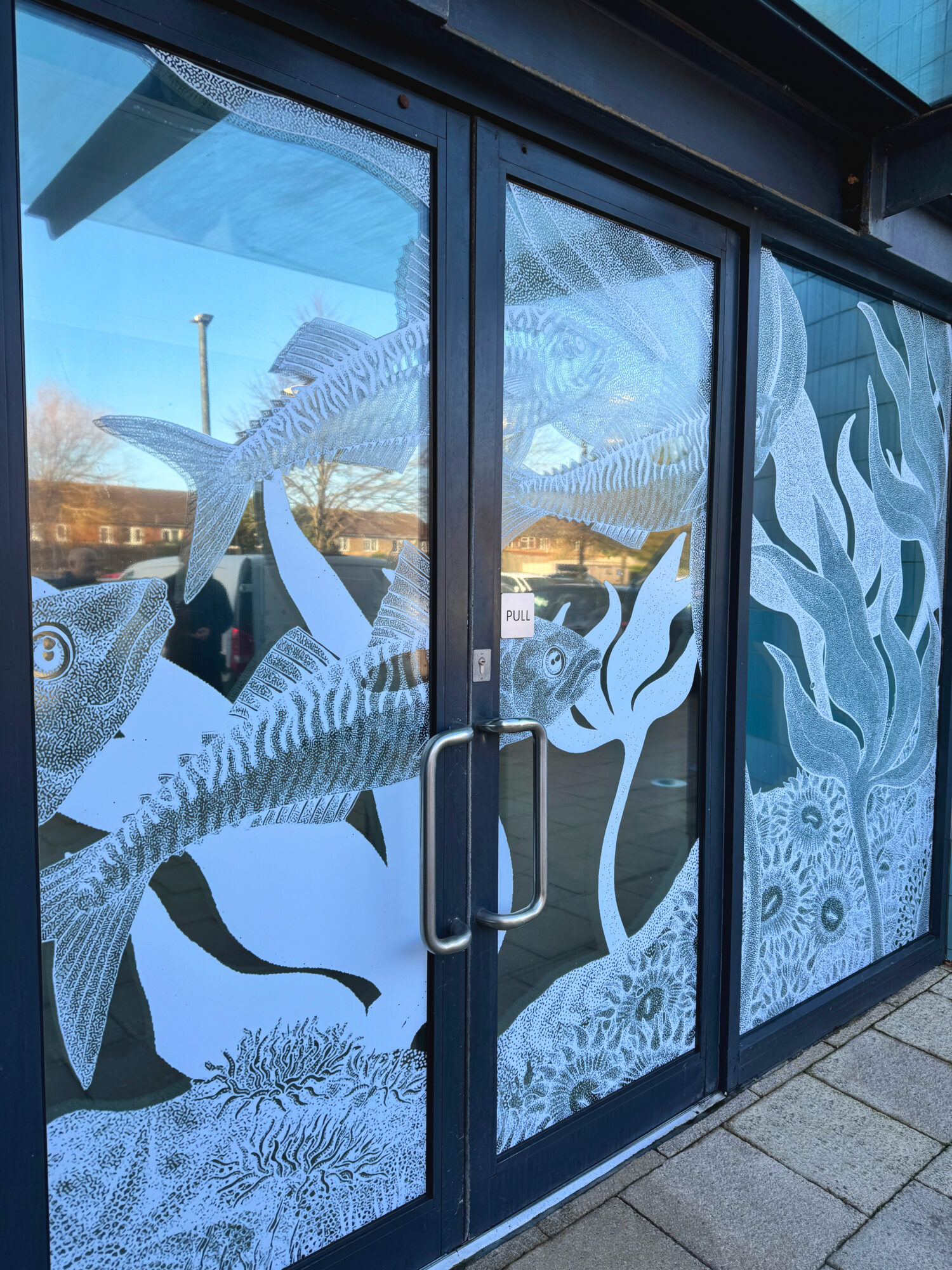 The installation doesn’t just look beautiful—it’s also a nod to sustainability and the importance of the local ecosystem. Local print and signage experts John E Wright brought this artwork to life, ensuring the transition from concept to installation was seamless.