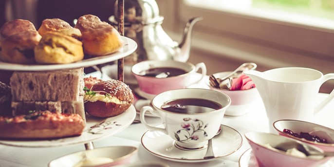 - Yorkshire afternoon tea for two, consisting of a glass of prosecco or soft drink on arrival, a selection of sandwiches, homemade pork sausage rolls, freshly baked fruit scones with butter, jam, and clotted cream, cakes, and freshly brewed tea or coffee