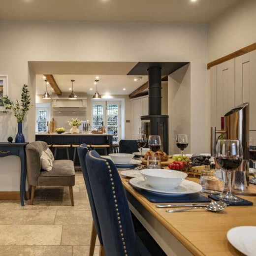 Beckside in Kettlewell, Yorkshire Dales: A beautiful stone cottage that sleeps six people and welcomes two dogs. It perfectly blends historic charm with modern comforts. Inside, visitors will find a luxurious open-plan living space with exposed beams and a classic wood-burning stove. The property also boasts an elevated garden offering lovely village views, making it a great choice for families or groups of friends.