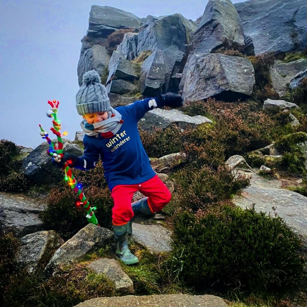 Oh no. Not just any old stick. A PROPER walking stick, perfect for those excellent walking stick-sized finds! Take your stick home, wash it (you can sand it if you’re feeling fancy), then paint it. You can do anything you like! Paint patterns, attach ribbons…. We did ours at Christmas time and attached bells and fairy lights! Be as creative as you like and when you’re finished, make sure you head out and show it off on your next walk!