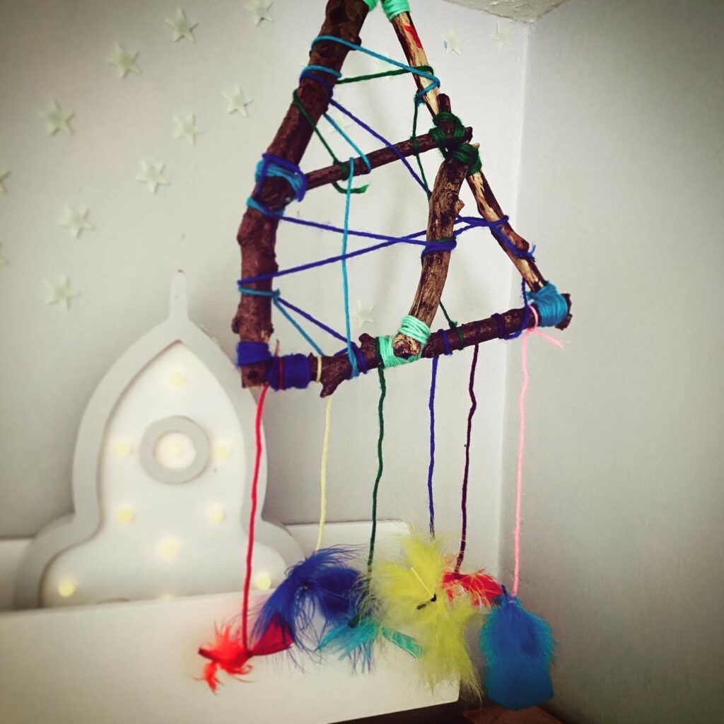 A dreamcatcher is supposed to catch bad dreams, but did you know you can make a stick version? Make a stick frame using some glue and some colourful string or wool. Weave the frame for a spider web effect, hang feathers and add anything else you like to it!