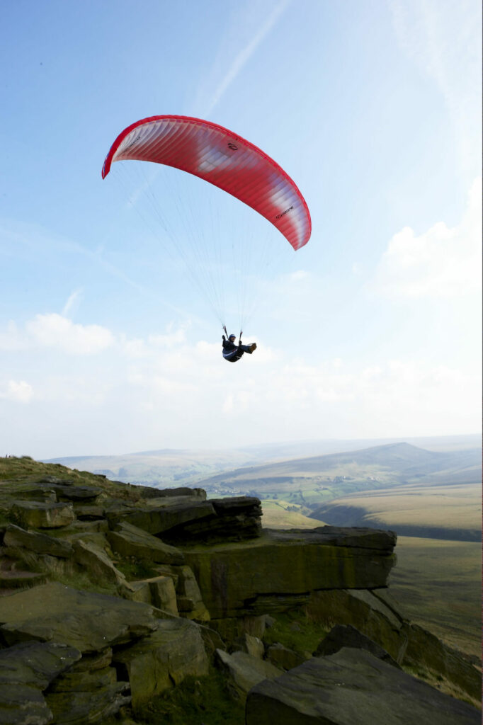 The sport of paragliding has come a long way from the early days of a few hops whilst sprinting down steep hills. Flights of up to 100km lasting 5 or 6 hours are regularly made in the UK and the Dales and South Pennines are amongst the best areas in the country for it.