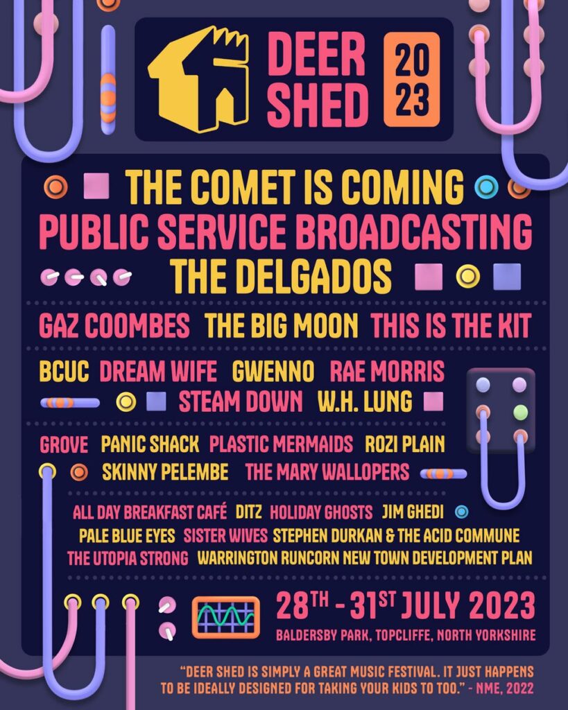 North Yorkshire’s Deer Shed have shared the first line up announcement for 2023’s thirteenth edition of the festival. A family-friendly event with an uncompromised cutting-edge cultural programme, the family-owned, independent festival have announced the first acts scheduled to appear including main stage headliners The Comet Is Coming, Public Service Broadcasting & The Delgados.