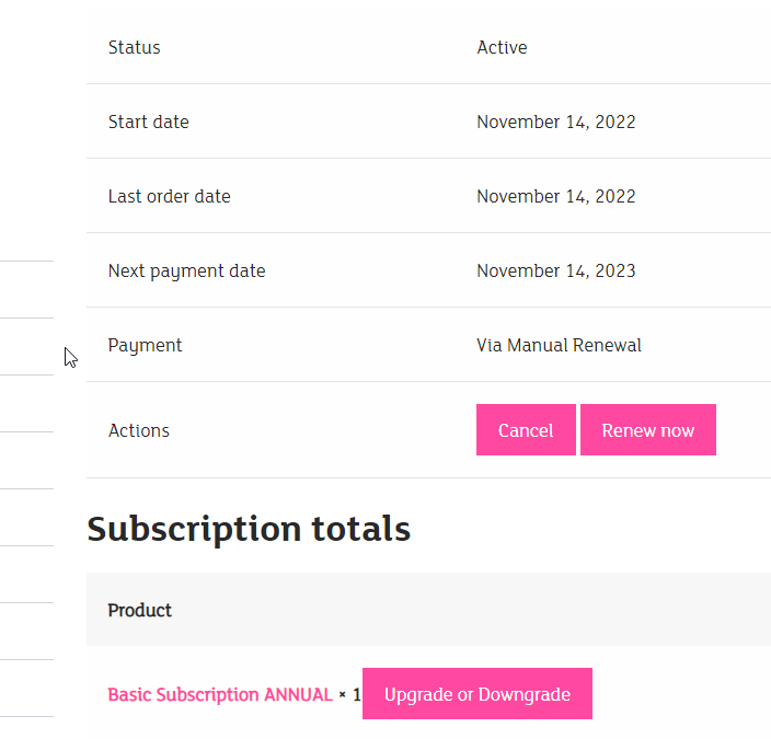 We've all signed up for things we don't want to keep using, and we understand. This isn't some telephone a call centre to cancel situation. There's an option to Upgrade OR Cancel in My Account, under "Subscriptions". It looks like this: