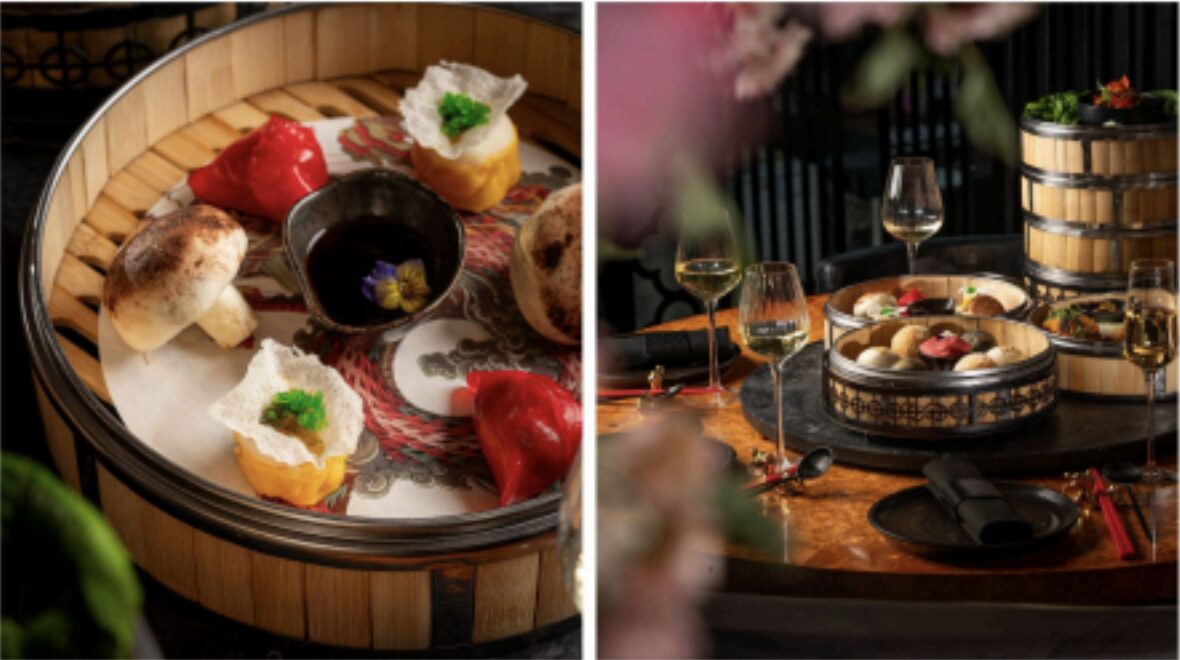 Dim Sum, known for its small plates and dumplings, is traditionally enjoyed on Sundays with friends and family. Tattu’s new Dim Sundays menu features four layers, each delivered to the table in a stack of bamboo steamers resembling a pagoda tower. This innovative presentation enhances the dining experience, offering both visual and gastronomic delight.