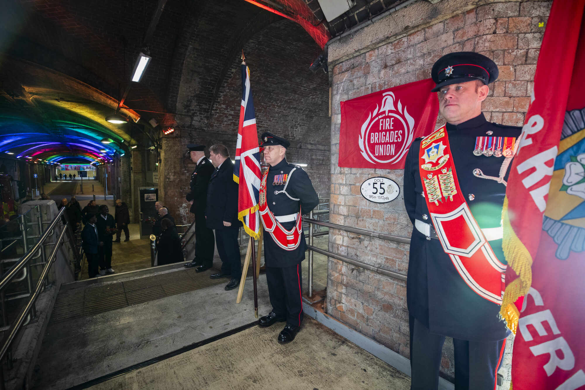 This week, thanks to the Fire Brigades Union’s Red Plaque Scheme, Jim’s story has been woven into the fabric of Leeds. The plaque has been unveiled at the entrance to the Dark Arches at the station, where thousands of people pass through every day, ensuring his story will never be forgotten.