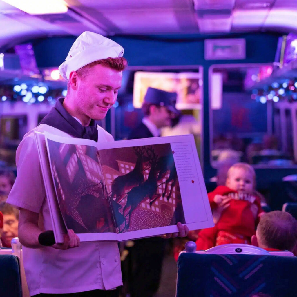 Talented performers recreate the magic of the story throughout a one-hour immersive experience. Watch as the conductor punches golden tickets, chefs dance through the carriages serving hot chocolate and cookies, and Santa himself appears to greet passengers. Every guest receives the ‘first gift of Christmas’ — a shiny silver sleigh bell, just like in the book.