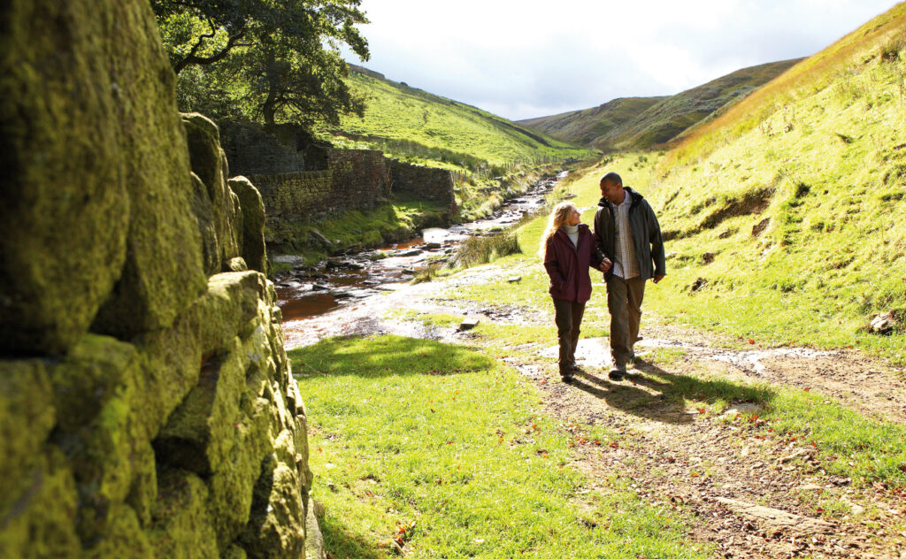 Follow the clear path along the side of valley, across two footbridges and to meet the southern tip of March Haigh Reservoir. With the reservoir behind you, cross the stream, then keep it to your left as you head over the moor. Cross another stream and then turn left to follow a much clearer path.which follows the stream, and then crosses it. The path drops sharply here, over a bridge, then another, to join the Standedge Trail. The path meets Blake Lee Lane, turning right. Walk along this narrow road until it turns in Water Road, and turn right down Ainsley Lane.
