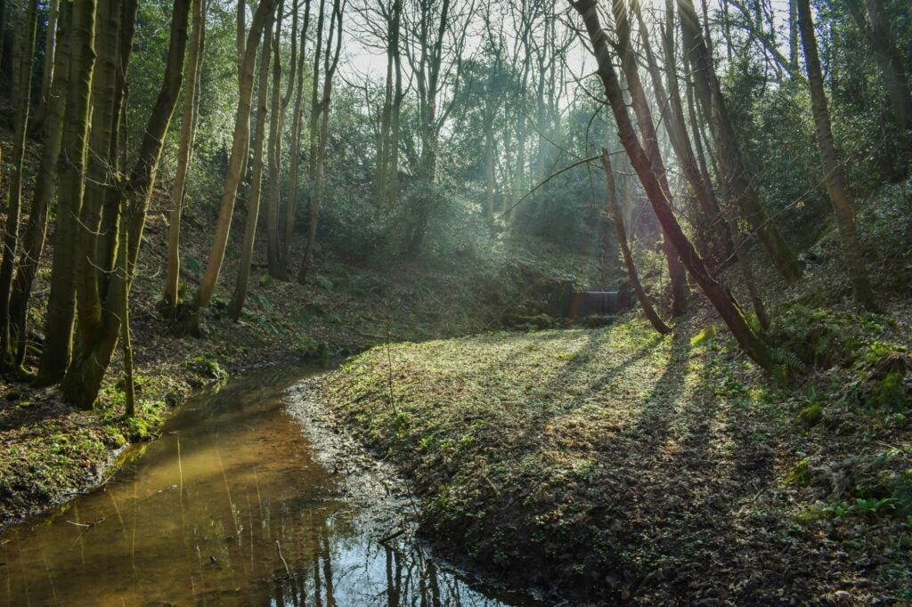 From the layby, keep the wood to the right of you, and walk towards the Public Footpath sign pointing into the wood. Turn right and follow the path into the woods. When the public footpath turns right over a bridge, continue to carry straight on. Follow the clear path until there’s a fork. Take the left hand turn and continue to follow the path as it drops fairly sharply. Cross over two streams and turn right, then right again to the Weeping Rock. Continue along the path, with the river not too far away on the left. This is now part of the Ripon Rowel Walk. The path bends around to the left, and soon there’s a large path branching off to the right. Take this path as it climbs back up, turning right as it bends round and follow it all the way to where the path’s forked, after crossing a stream. Turn left and retrace your footsteps back to the entrance of the wood, and then turn left to return to where you parked.