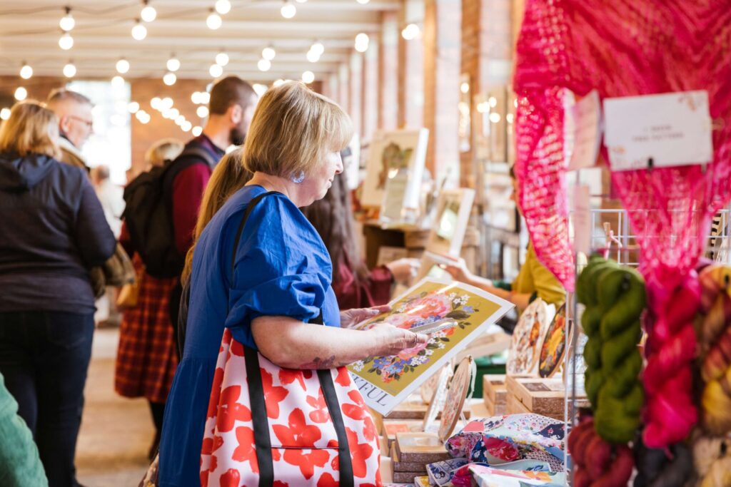 Let’s start with the Market. Imagine two days of colourful stalls from more than 50 independent textile businesses—each one packed with everything from fabric and wool, to DIY kits and beautiful homeware. It’s the kind of place where you can actually chat with the people who made the stuff. Like, the actual makers. So if you’ve ever wanted to ask how someone dyed that yarn or printed that fabric, now’s your chance.