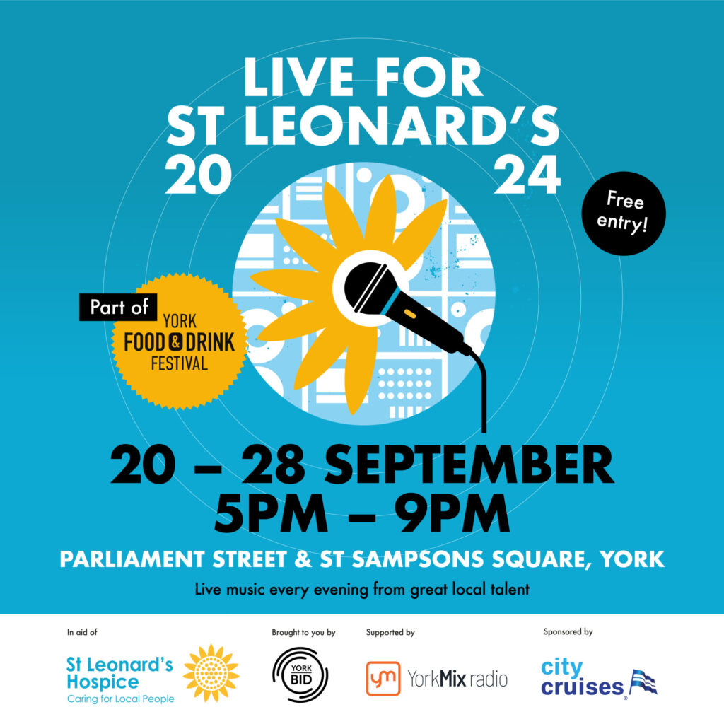 |York's beloved Live for St Leonard’s festival is back, bringing nine days of live music to the city in support of St Leonard’s Hospice. Running from Friday 20th to Saturday 28th September, this community event blends local talent, charitable giving, and the city's rich food culture.