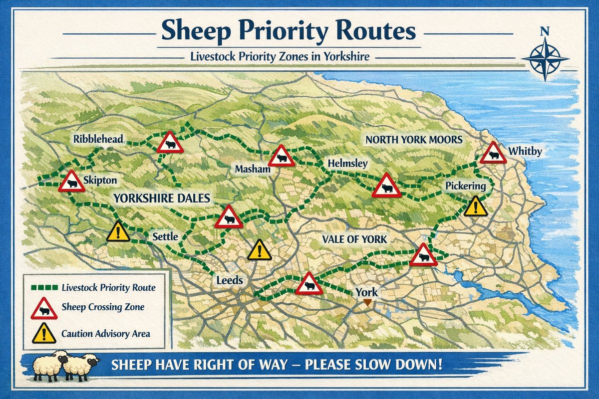 •A new highways initiative set to be rolled out across parts of Yorkshire will prioritise livestock on rural roads, with sheep officially granted right of way in designated areas.