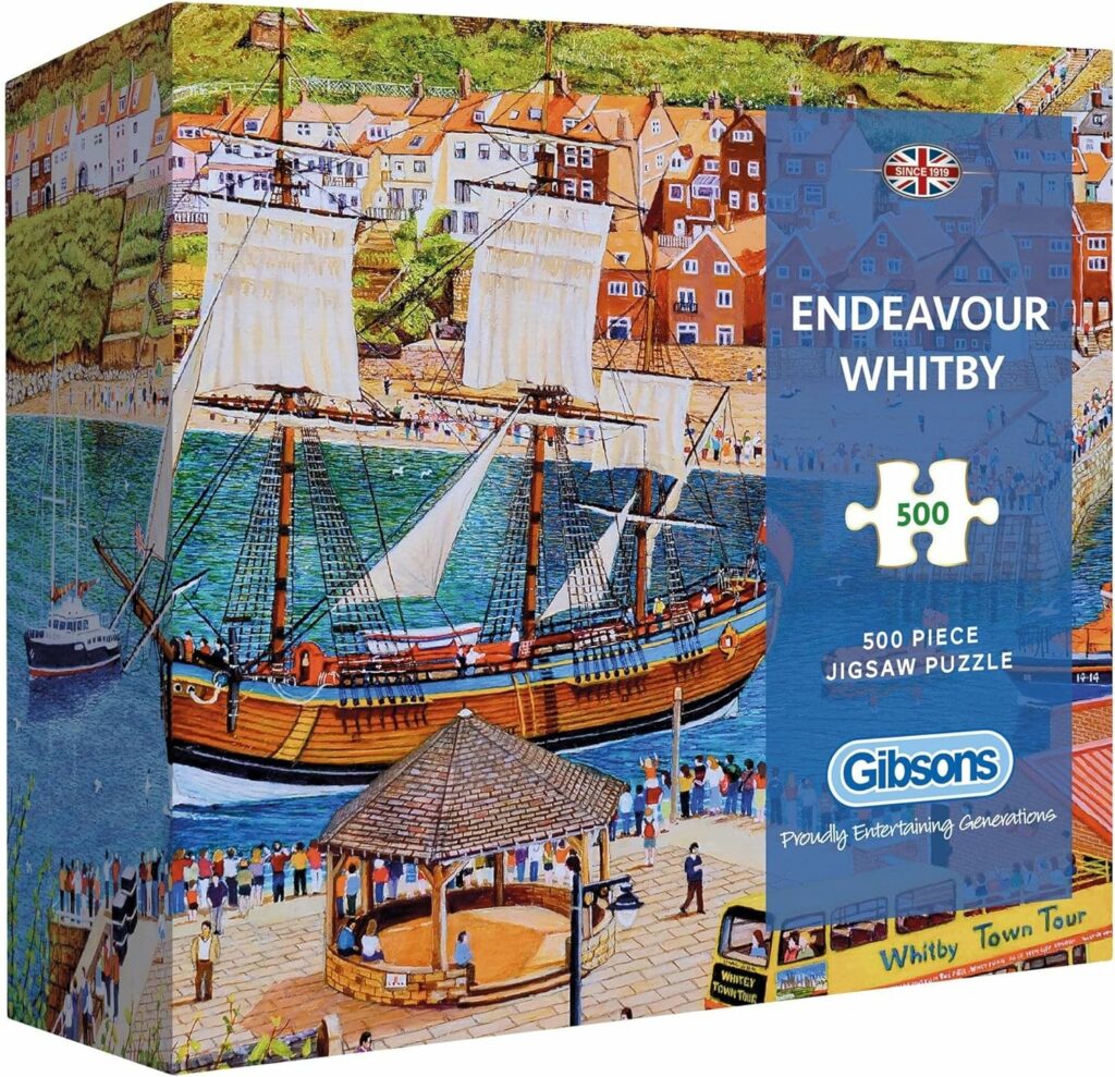 This puzzle shows the replica of the ship Captain James Cook used to sail to Australia and New Zealand when it arrived in Whitby to mark the 250th anniversary of Cook's first scientific expedition to the Pacific in 1768. The original Endeavour was first registered as the ‘Earl of Pembroke’ when she was built in Whitby by shipbuilder Thomas Fishburn in 1764. She was built as a Whitby Cat designed to haul coal before the Navy commissioned and re-registered her as HM Bark Endeavour.