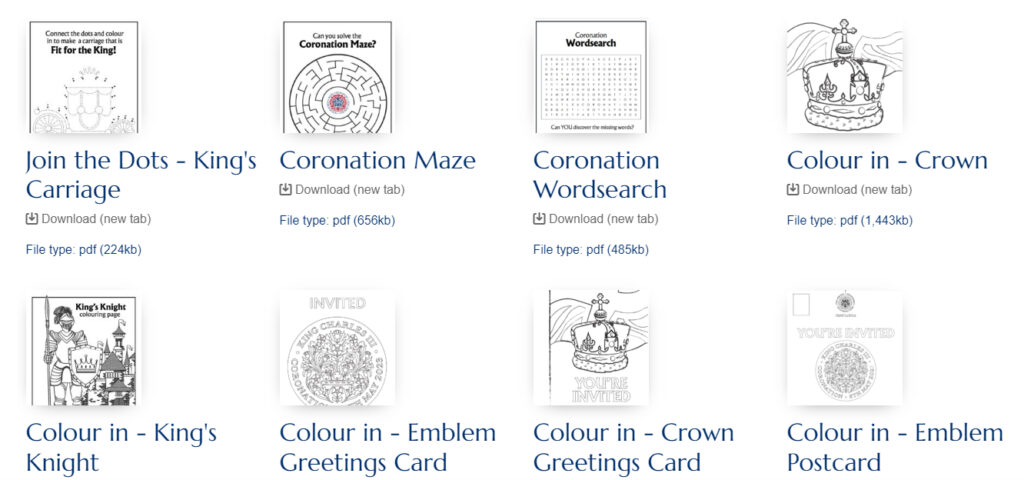 The full Coronation toolkit includes children's colouring pages, recipes, printable postcards and much more: