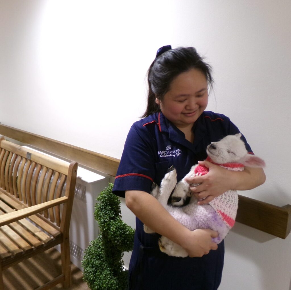 “Our residents have really enjoyed their unusual visitors today. We knew that having the lambs here would be a bit of fun for all our residents, especially as some find it difficult to go on many outings in our minibus. We are always looking for new activities for the residents and today we have seen the enjoyment and the therapeutic influence animals can have on people.”