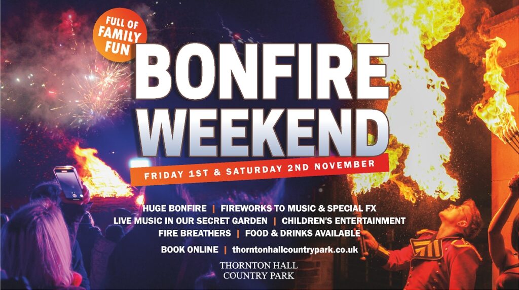 Located near Barnsley, this event is family-friendly with quieter fireworks to accommodate animals. Gates open at 10 AM, with the bonfire lit at 5 PM and fireworks at 6 PM.