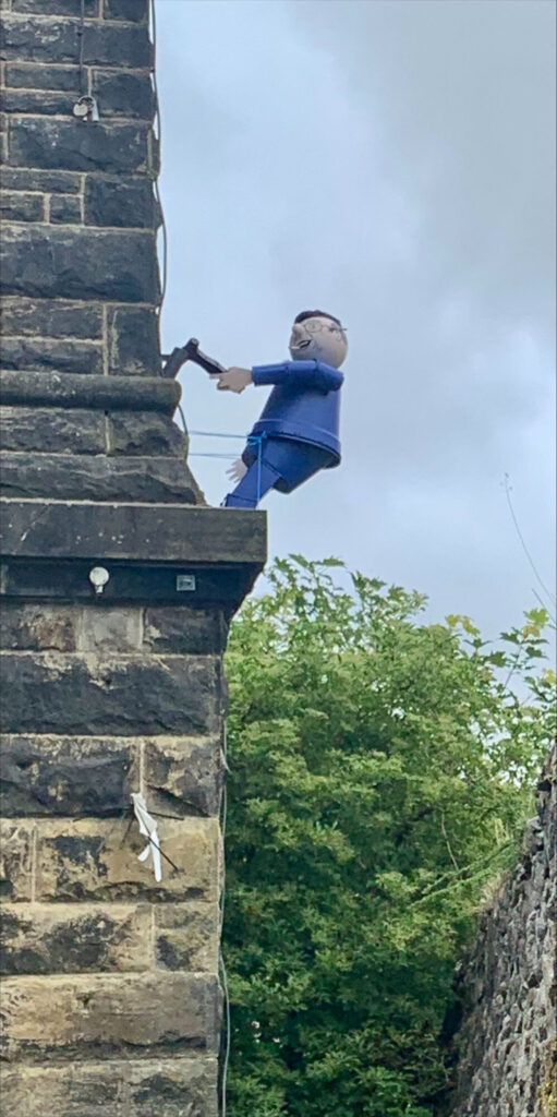 |Ever been wandering through a town and seen something that just makes you stop and smile? Not a grand monument or a fancy building, but something quirky and unexpected. Well, if you find yourself in the Yorkshire town of Settle, you might just see the spirit of a national treasure scaling a massive chimney. Made of flowerpots.