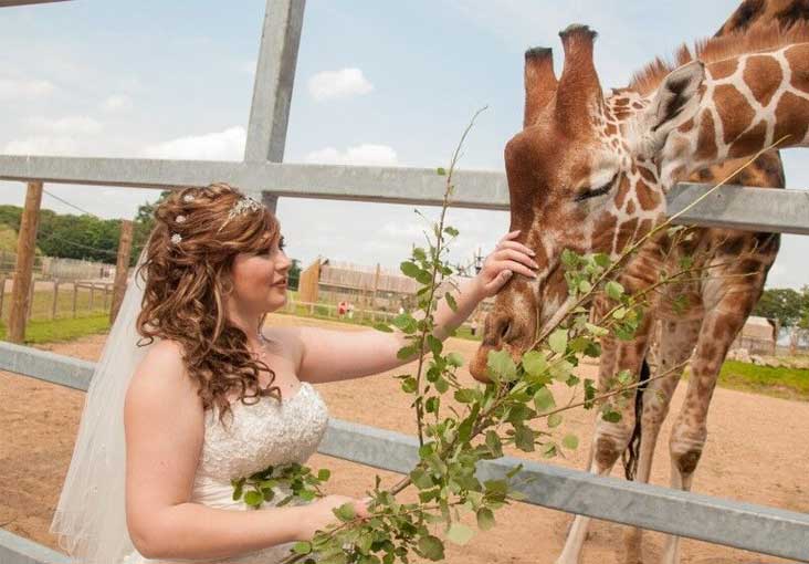 Some brides might have been worried that 16 foot Bahansin, Jambo and Palle would literally overshadow her on the day but not Abbie Bowler, who became the first bride to say “I Do” at the Yorkshire Wildlife Park when she married David Merrett in 2014.