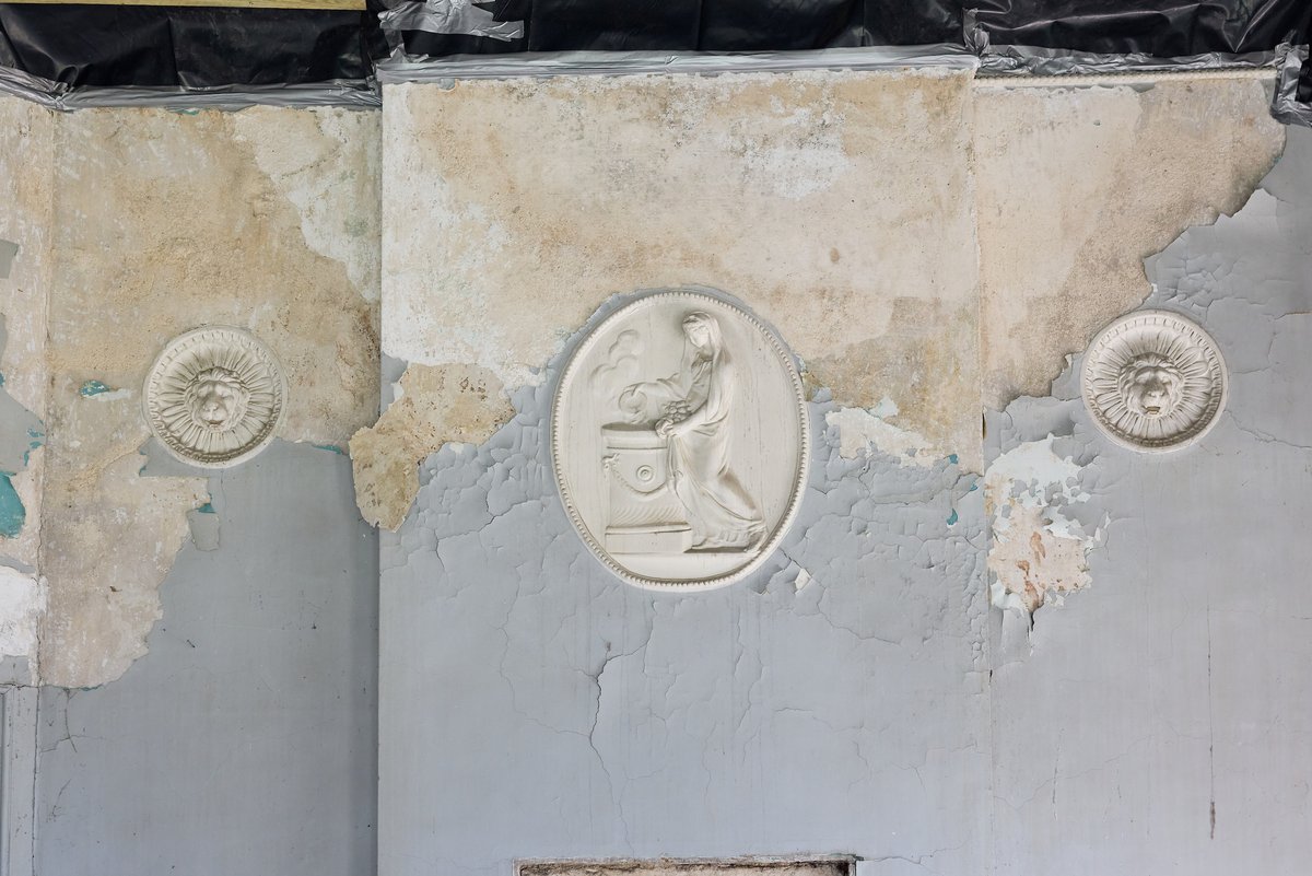 The problem is, time hasn't been kind to the South Tower. While the WWPT carried out urgent repairs to the outside of the tower in 2022, the inside is still in big trouble. The once opulent plasterwork is crumbling away. The beautiful ceiling the Marchioness designed has been completely lost, replaced for now with black plastic sheeting to keep the weather out. Worse still, a nasty thing called dry rot, which is a bit like a fungus that eats wood, is spreading through the staircase and the floor. A gorgeous marble panel carved by the famous sculptor Joseph Nollekens had to be removed just to keep it safe. The whole space is suffering from damp and decay. Without help, this unique piece of 18th century history will simply disappear. This is why the need for expert building conservation is so urgent; the decay won't wait.