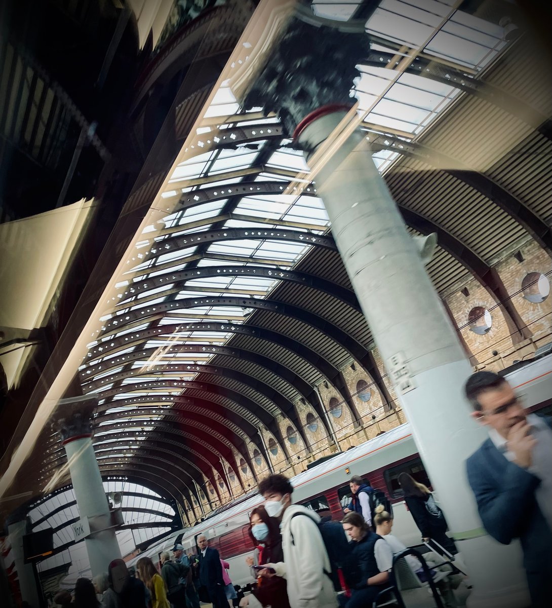 At its opening it was the largest station in the world, with thirteen platforms arranged along a graceful curve dictated by the site. Above them soared a vast iron-and-glass train shed: cast-iron Corinthian columns supporting elliptical wrought-iron arches, forming what many described as an industrial cathedral. Heraldic shields, the white rose of York, and company insignia adorned the structure, merging civic pride with engineering prowess. Even critics who dismissed the exterior stock brickwork as drab conceded the drama within.