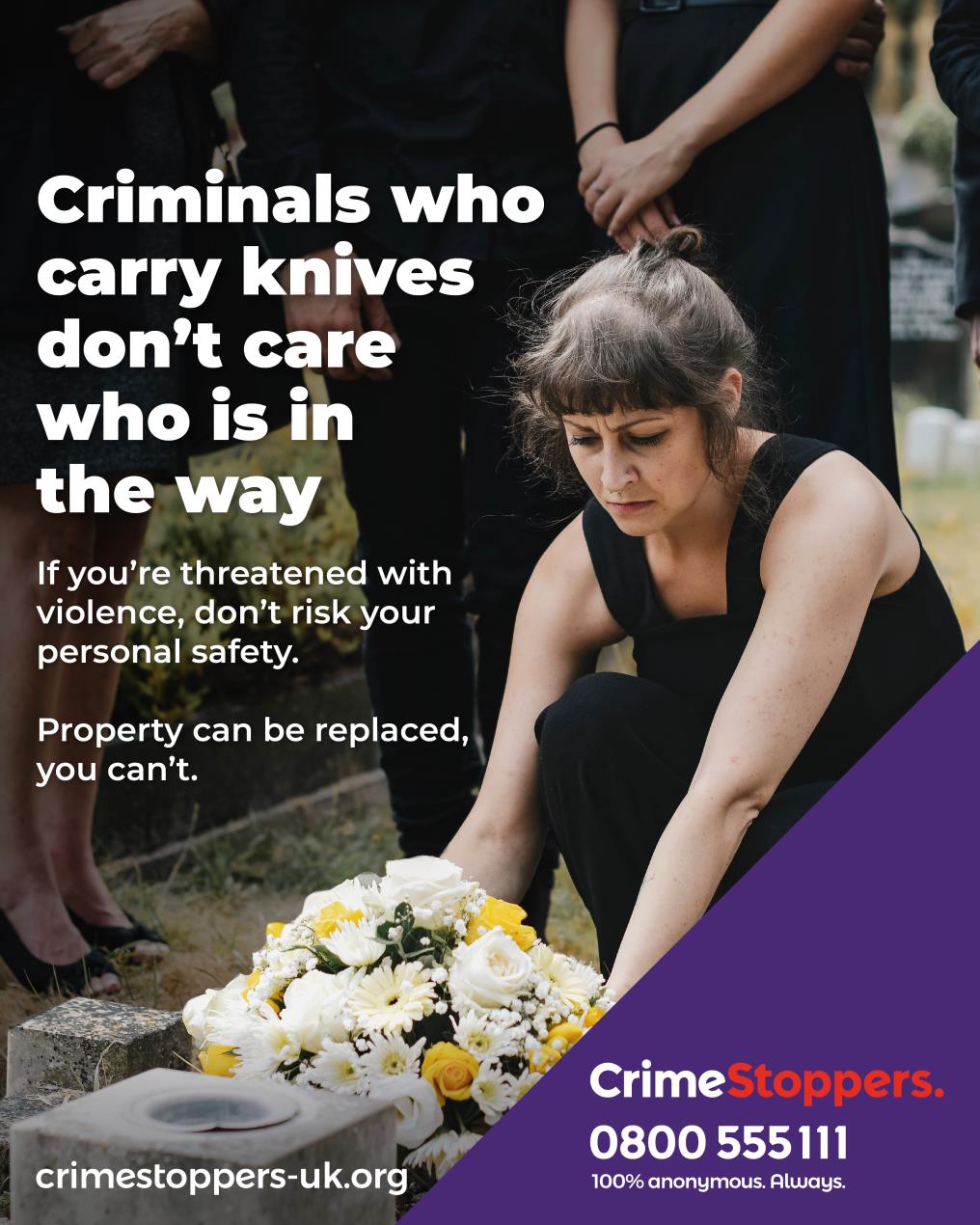 If you are worried about knife crime or any other crime in your area, you can contact Crimestoppers 24/7. It's completely anonymous.