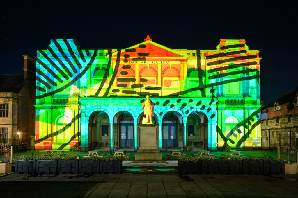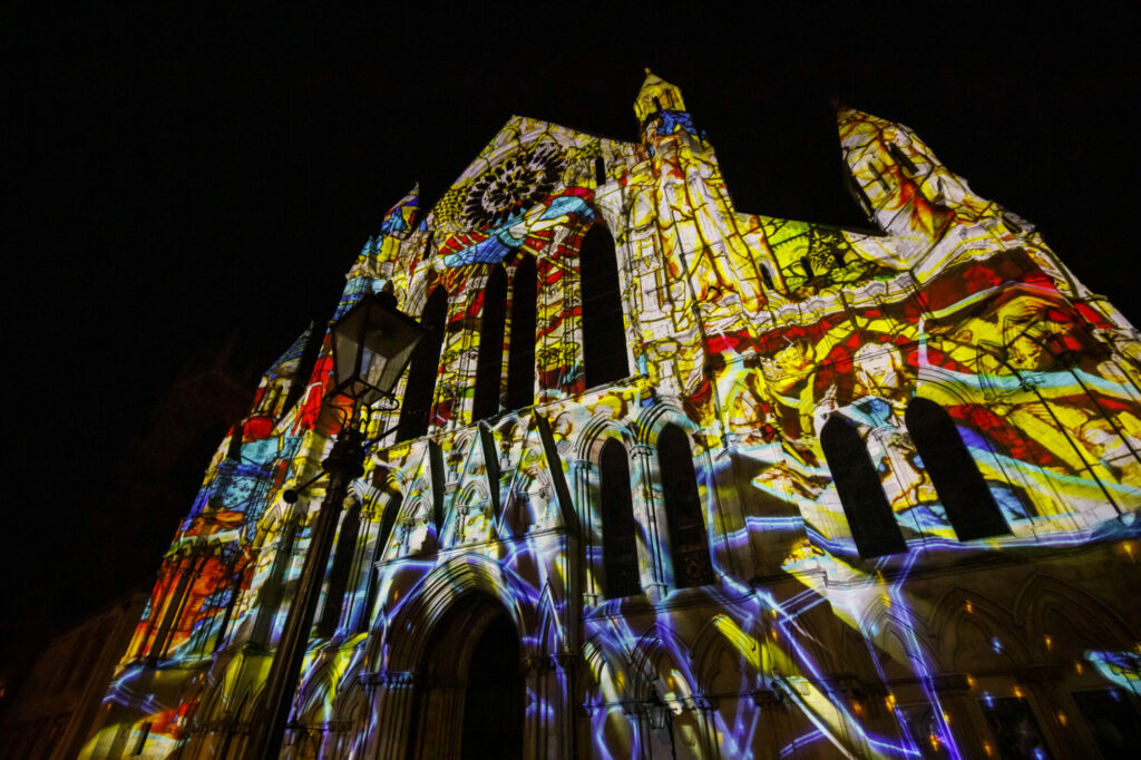 The Colour & Light project is a large-scale visual arts event that features a 10-minute animated projection mapping display onto York’s iconic buildings.