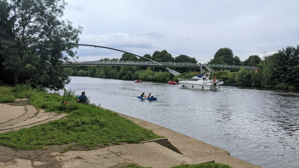 From Rowntree Park in York you pass the curved Millennium Bridge and continue walking south along the riverside pathway.